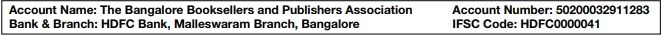 All cheque/DD should be written favouring “The Bangalore Booksellers and Publishers Association”, Payable at Bangalore(Only full and final payments will be accepted).